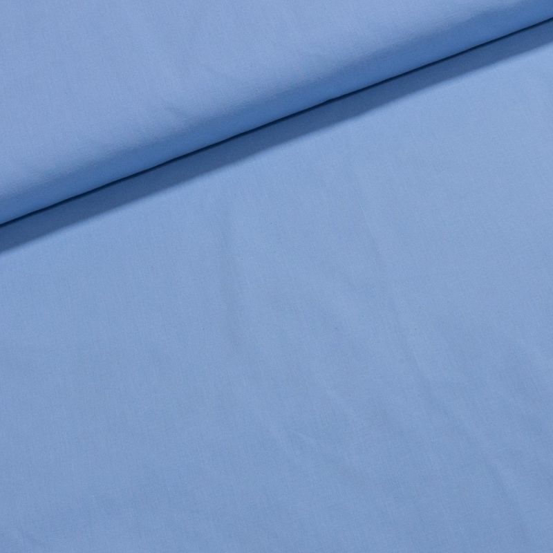 Bavlněná látka (tkanina) v jednobarevné světle modré barvě. Látka je v šířce 160 cm, vyrobena ze 100% bavlny (gramáž 135g/m2) v plátnové vazbě a je z obou stran stejná.