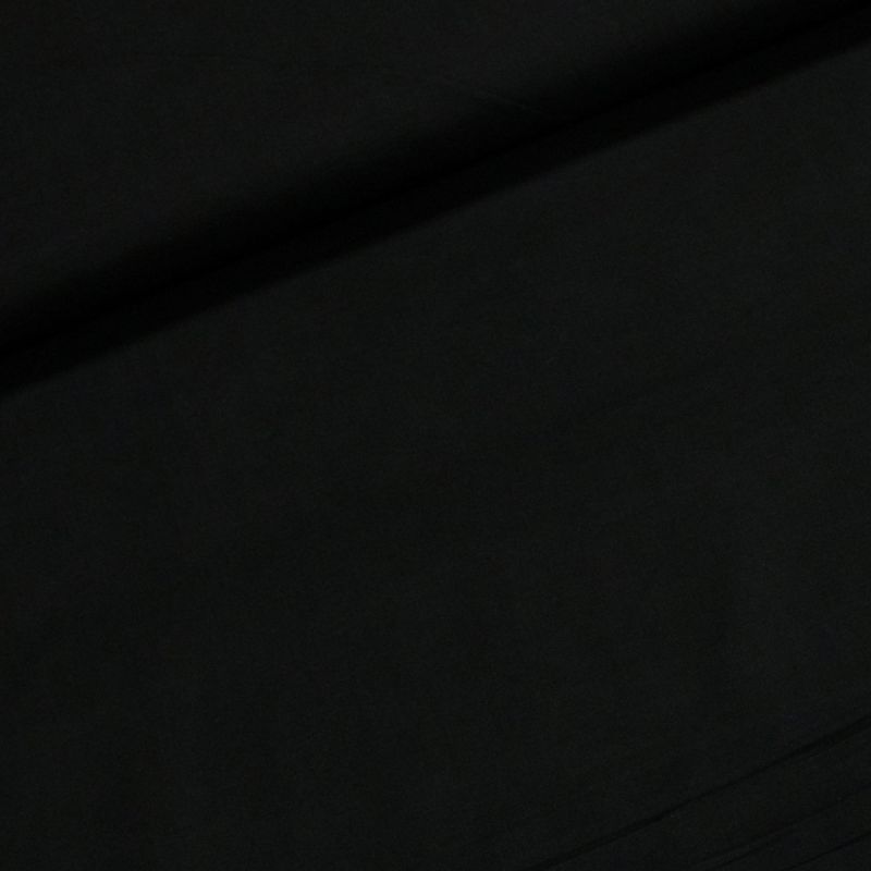 Bavlněná látka (tkanina) v jednobarevné černé barvě. Látka je v šířce 140 cm, vyrobena ze 100% bavlny (gramáž 135g/m2) v plátnové vazbě a je z obou stran stejná.