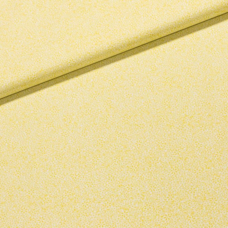 Bavlněná látka (tkanina) se vzorem žlutých kvítků. Látka je v šířce 150 cm, vyrobena ze 100% bavlny (gramáž 135g/m2) v plátnové vazbě. Vzor látky je n...