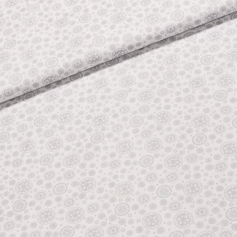 Bavlněné plátno vánoční 1612804/19 stříbrné mandaly na bílé, š.150cm (látka v metráži)