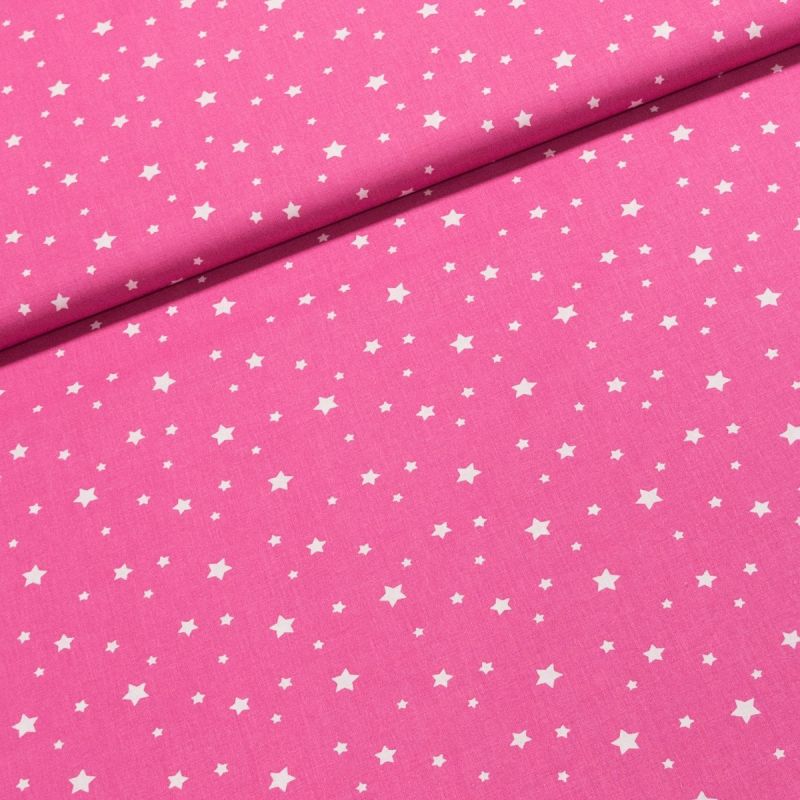 Bavlněná látka (tkanina) se vzorem různě velkých bílých hvězdiček na růžovém podkladu. Látka je v šířce 150 cm, vyrobena ze 100% bavlny (gramáž 120g/m2) v plátnové vazbě. Vzor látky je natištěn jen z jedné strany z druhé strany je látka bez potisku.