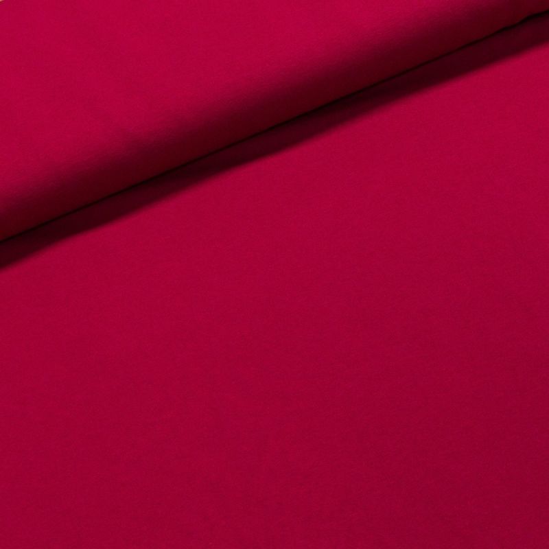 Elastický bavlněný úplet (jersey) v jednobarevné tmavě sytě růžové barvě. Je vyroben z 95% bavlny a 5% elastanu (gramáž 240g/m2). Látka je v šířce 180 cm, je vhodná na výrobu mikin, tepláků, nákrčníků, čepic či šatů a je z obou stran stejná.
