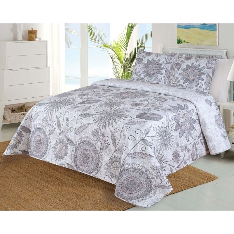 Přehoz na postel PRADO šedý, květinový vzor, 220x240cm, dvoulůžkový + 2x povlak 45 x 45cm