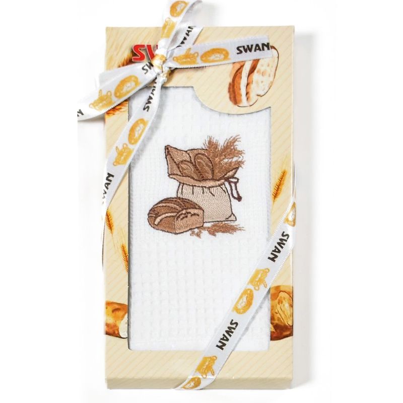 Utěrka SWAN 56 vaflová vyšívaná, dárkové balení, pečivo na bílé, 1 kus 50x70cm