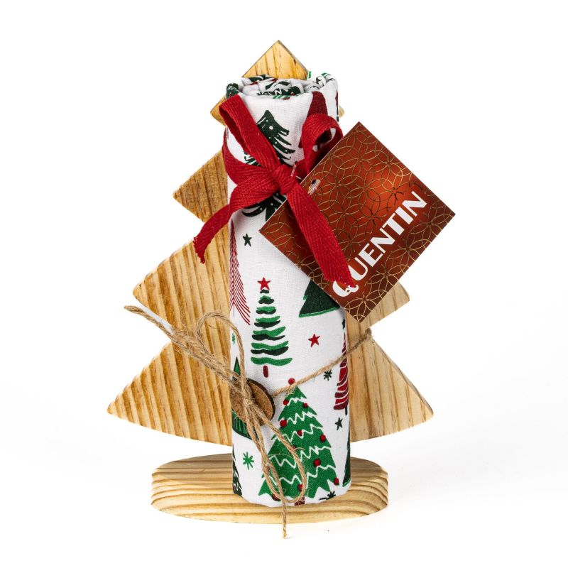 Bavlněná utěrka s vánočním motivem stromečků v dárkovém balení. Balení obsahuje 1 kus utěrky 40x70cm a 1 kus dřevěného stromečku. Utěrka a stromeček jsou baleny v nápaditém ozdobném provedení, utěrka je vyrobena ze 100% bavlny.