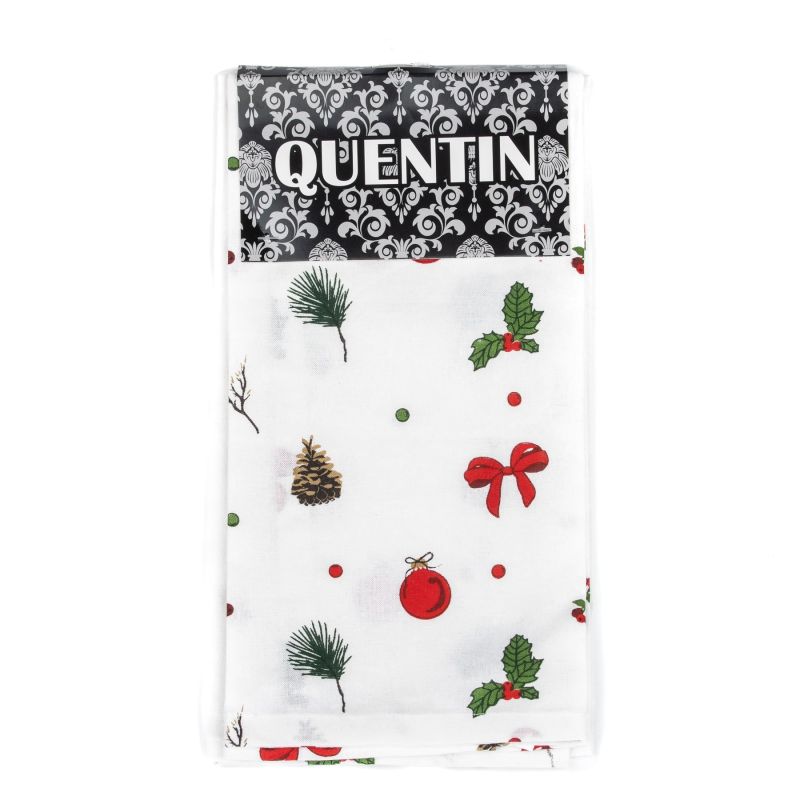 Souprava dvou kusů kuchyňských utěrek z 100% bavlny v rozměru 40x60cm se vzorem šišek, baněk a mašliček na bílém podkladu. Sada obsahuje 2 utěrky....