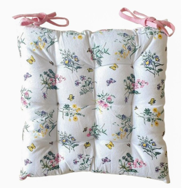 Prošívaný čtvercový sedák s motivem lučního kvítí na bílém podkladu v rozměru 40x40cm s výškou cca 8 cm. Sedák je vyroben z kvalitního materiálu s vys...
