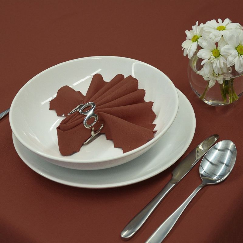 Hotový látkový kuchyňský ubrus s vodoodpudivou teflonovou vrstvou v rezavé barvě s vlnkovanými okraji. Díky teflonové vrstvě se rozlité tekutiny do ub...