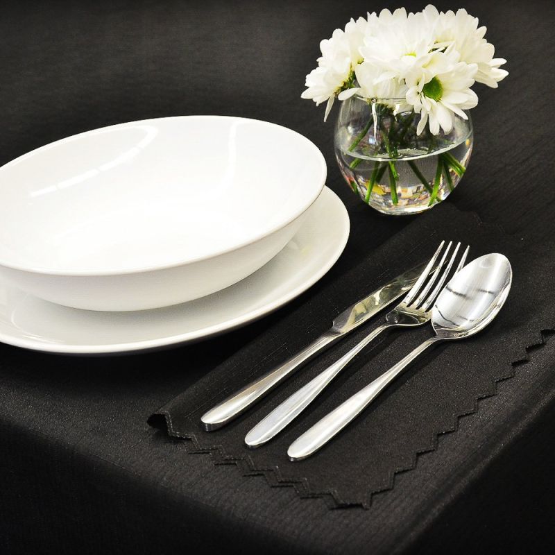 Hotový látkový kuchyňský ubrus s vodoodpudivou teflonovou vrstvou v černé barvě s vlnkovanými okraji. Díky teflonové vrstvě se rozlité tekutiny do ubr...