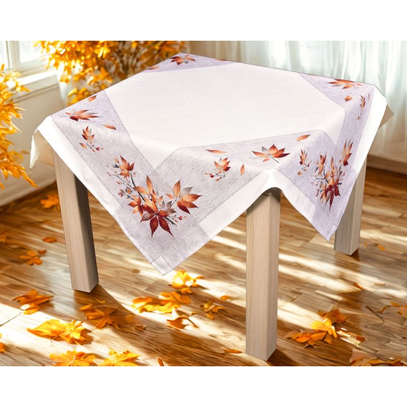 Kuchyňský ubrus CYH5957GC, podzimní listí, bílo-oranžová, 85x85cm (čtverec)
