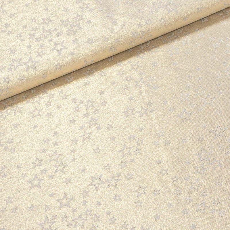 Polyesterové plátno s teflonovou úpravou / ubrusovina vánoční ESTER 1 oboustranná, hvězdičky, béžová / zlatá, š.190cm (látka v metráži)