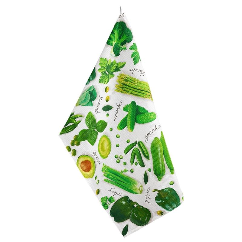 Vaflová kuchyňská utěrka ze 100% bavlny (gramáž 175g/m2) v rozměru 50x70cm se vzorem různých druhů zeleniny v zelených barvách na bílém podkladu. Utěr...