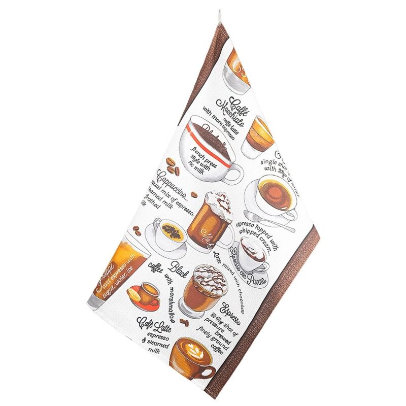 Vaflová kuchyňská utěrka ze 100% bavlny (gramáž 175g/m2) v rozměru 50x70cm se vzorem kávy v hnědých barvách na bílém podkladu. Utěrka má vaflovou vazb...