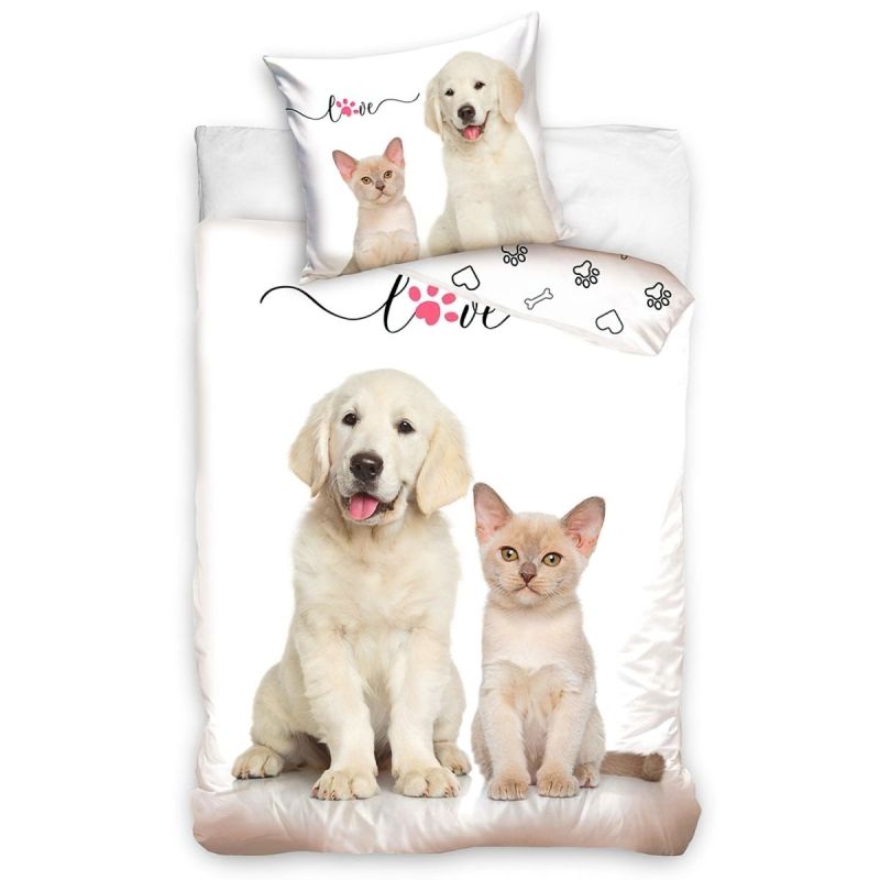 Dětské povlečení ŠTĚŇÁTKO A KOŤÁTKO, fototisk, bílé, bavlna hladká, 140x200cm + 70x90cm