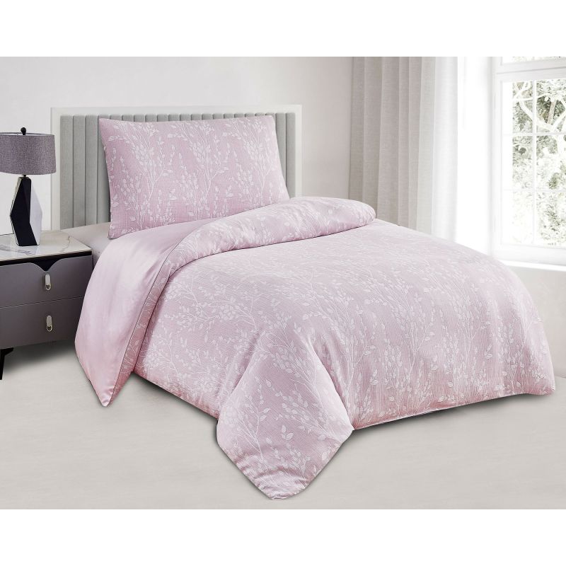 Povlečení letní žakarové se vzorem větviček v bílé barvě na jemně růžovém podkladu. Povlak na přikrývku i povlak na polštář jsou oboustranné, jedna st...