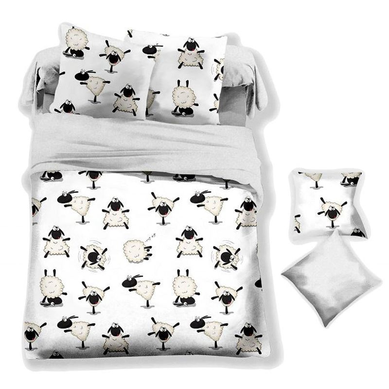 Mikroflanelové povlečení z kolekce Sleep Well s motivem béžových oveček na světle šedém pozadí, z druhé strany je jednobarevné světle šedé. Mikroflanel se vyznačuje svou velkou hebkostí a hřejivostí v zimě, v létě naopak příjemně chladí. Souprava je vyrobena ze 100% polyesteru a obsahuje jeden povlak na přikrývku 140 x 200 cm a jeden povlak na polštář 70 x 90 cm. Zapínání na zip.