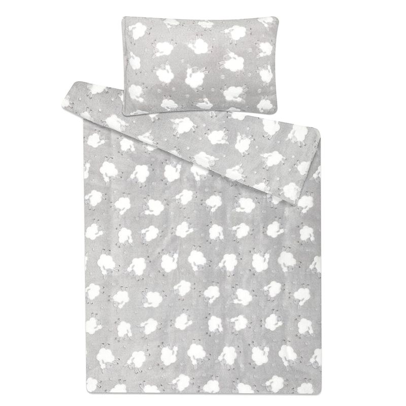Povlečení OVEČKY SVĚTLE ŠEDÉ mikroflanel, bílé ovečky na světle šedé, dětské, 140x200cm + 70x90cm