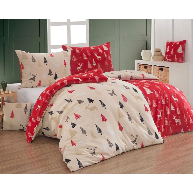 Povlečení Matějovský PATTI, stromečky červeno-béžové, flanel premium (více rozměrů)