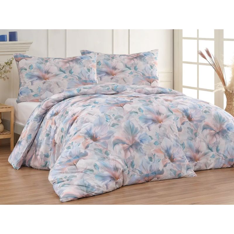 Povlečení Matějovský EDEN, modré a lososové květy, mako jersey, 140x200cm + 70x90cm