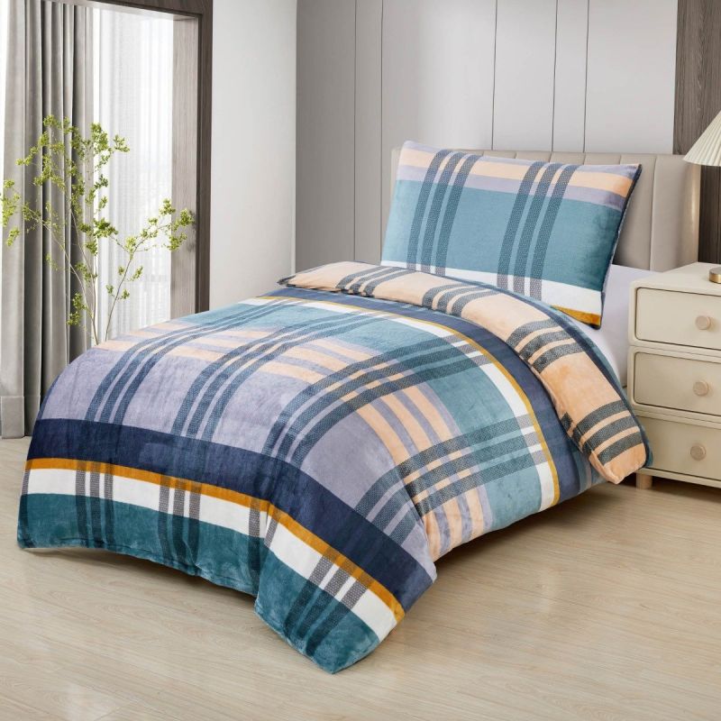 Povlečení EUGEN modro-béžové káro, mikroflanel, 140x200cm + 70x90cm