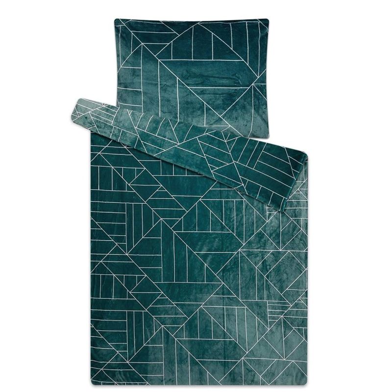 Povlečení VEČER DOMA mikroflanel, geometrický vzor, tmavě zelené 140x200cm + 70x90cm