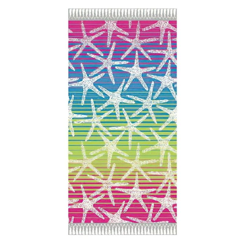Plážová osuška DELTA, MOŘSKÉ HVĚZDICE, růžová duhová, froté, 90x170cm