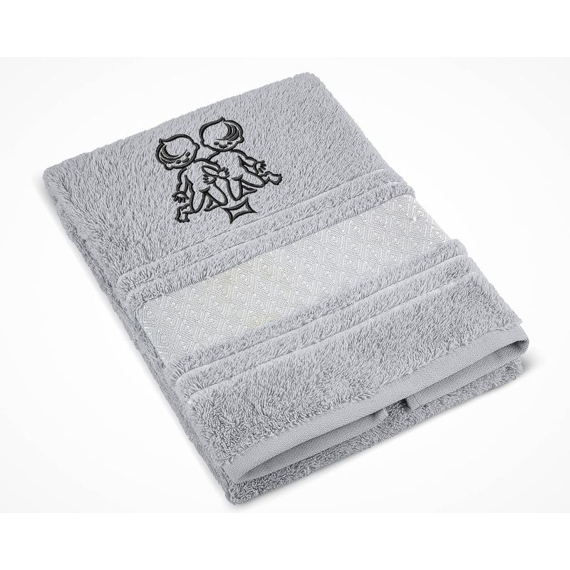 Froté ručník S VÝŠIVKOU ZNAMENÍ ZVĚROKRUH BLÍŽENCI, šedý, 50x100cm