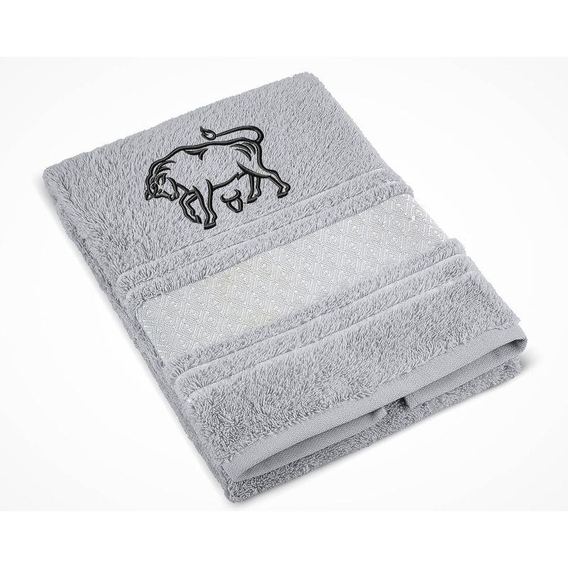 Froté ručník S VÝŠIVKOU ZNAMENÍ ZVĚROKRUH BÝK, šedý, 50x100cm