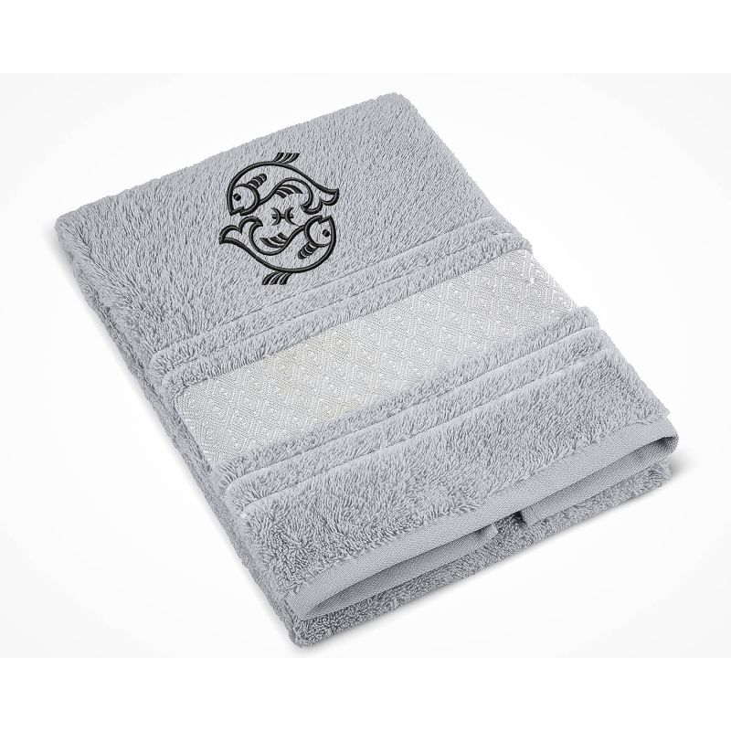 Froté ručník S VÝŠIVKOU ZNAMENÍ ZVĚROKRUH RYBY, šedý, 50x100cm