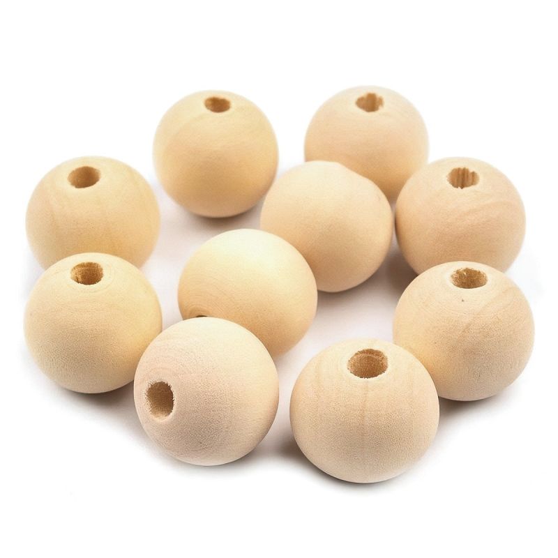 Osvědčené dřevěné korálky v přírodním provedení, nelakované. Jejich velikou výhodou je lehká hmotnost. Lze použít v kombinaci i s jinými tvořivými technikami, než je pouze korálkování, dřevěné korálky se často používají např. v kombinaci s pedigem. Korálky jsou v jednobarevné přírodní barvě s průměrem 18 mm a průvlekem 4,5 mm. Korálky jsou vhodné pro ozdobu dekorací, oděvních doplňků, bot a dalších doplňků. Korálky nejsou vhodné pro děti do 3 let.