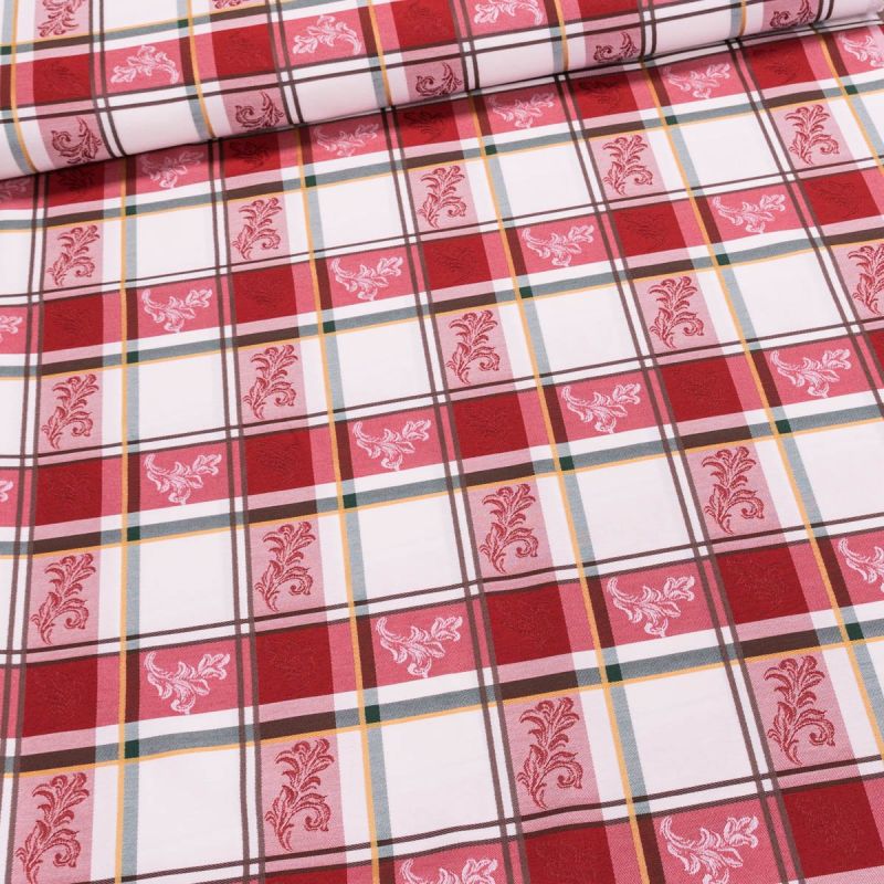 Dekorační látka / ubrusovina, vínovo-krémové káro, šířka 140cm (látka v metráži)