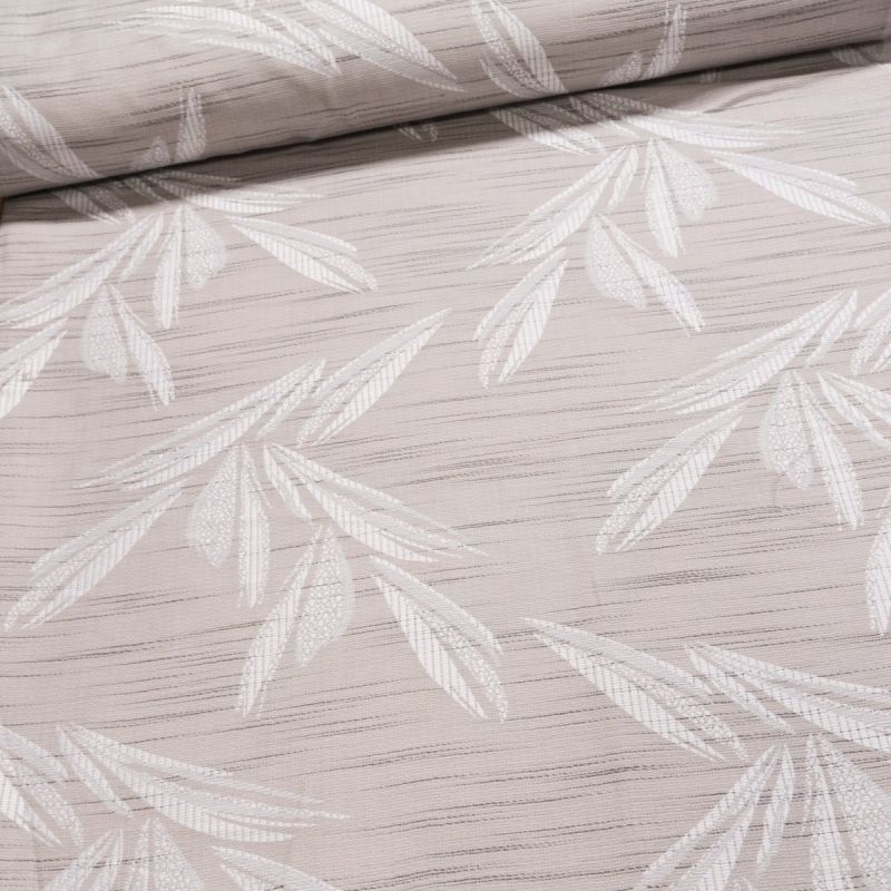 Dekorační závěs PALLAS 03, žakár, listy na béžové, šířka 150cm (látka v metráži)