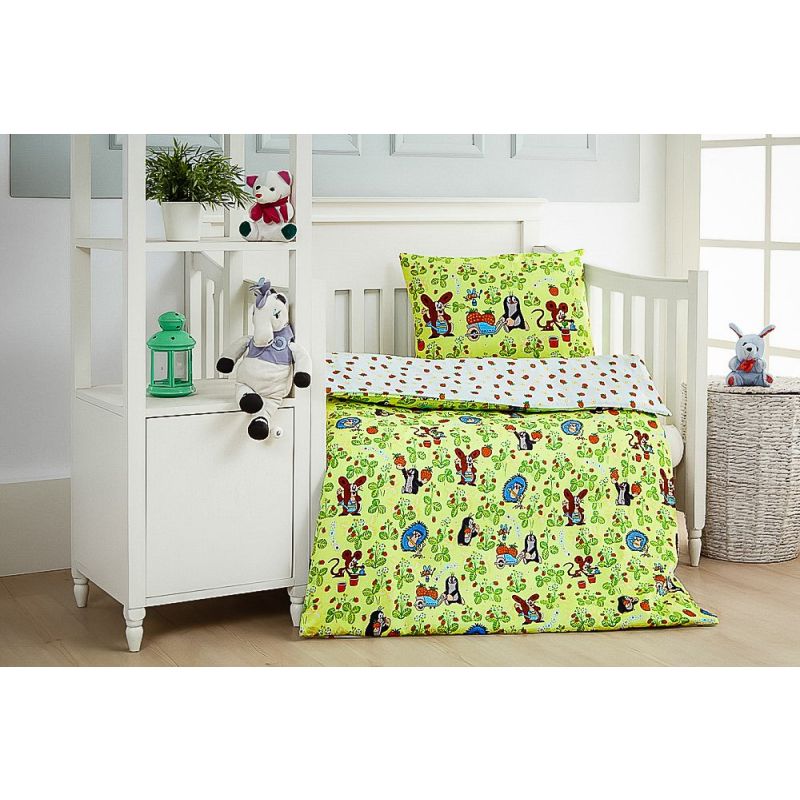 Dětské povlečení Matějovský do postýlky KRTEK NA LOUCE (Krteček), zelené, bavlna hladká (více rozměrů)