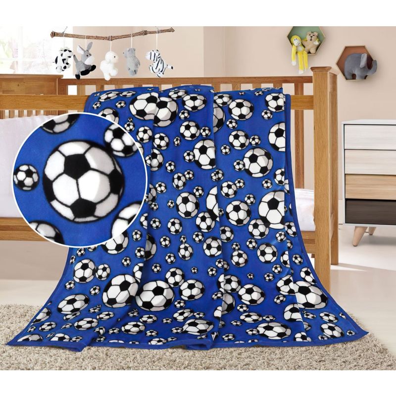Neuvěřitelně hebká, jemná a sametová dětská deka ELLA z kolekce Korall micro s oboustranným vzorem fotbalových míčů na modrém podkladu. Přikrývka je v...