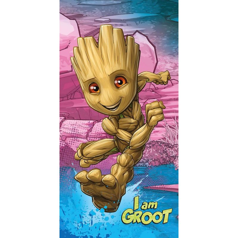 Dětská plážová osuška GROOT I AM GROOT, modro-růžová, froté, 70x140cm