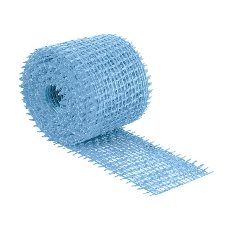 Dekorační pásek ze 100% juty v světle modré barvě. Dekorační pásek z juty slouží zejména pro dekorační účely, ruční výrobu nebo aranžování věnců. Dekorační pásky z juty mají oka cca 3-4 mm, šířku 4 cm a návin 3 m v gramáži 185 g/m2. Jutový pásek se při stříhání netřepí.