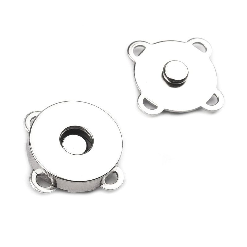 Magnetické zapínání na kabelku nebo na jakoukoliv tašku (brašnu) je užitečný pomocník v textilní galanterii. Magnetické zapínání je o průměru 18 mm a je dodávané v páru ( babka + dědek). Tento typ magnetického zapínání je vhodný pro zapínání na kabelky, batohy, psaníčka, tašky, větší peněženky a podobně.