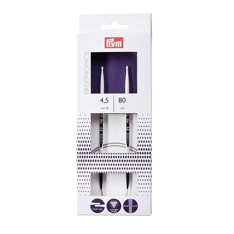 Revoluční pletací jehlice z vysoce funkčního syntetického materiálu německé firmy PRYM. Jehlice jsou ergonomické, velmi lehké a nehlučné. Špička ve tvaru kapky umožňuje jednodušší zachycení příze a hladké vedení jednotlivých ok, které je podpořeno i trojúhelníkovým profilem jehlice. Kruhové jehlice jsou spojeny ocelovým lankem potaženým plastem v délce 80cm a velikosti 4,5mm, které je pevné, ale zároveň i jemné a poddajné. Balení obsahuje 1 kus jehlic.