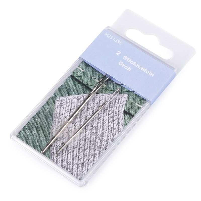 Sadu jehel na přišívání přízí ocení každá žena, která háčkuje, plete nebo dělá jiné ruční práce. Sada obsahuje dvě jehly. Jehly mají kulatou špičku. Souprava obsahuje 2 kusy jehel v průměru 1,6mm a 2,4 mm. Rozměry oček jsou 0,6 x 13 mm a 1,3 x 16 mm.