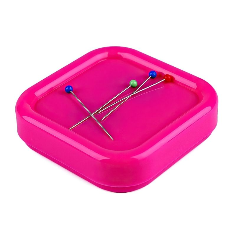 Magnetická podložka na odkládání jehel nebo špendlíků je šikovná pomůcka při šití. Díky ní se vám jehly a špendlíky nepoztrácejí. Vyrobena je v kombinaci plastu a magnetického kovu v rozměru 8,5 x 8,5cm. Dodávána je jako barevný mix (barvu nelze vybrat).