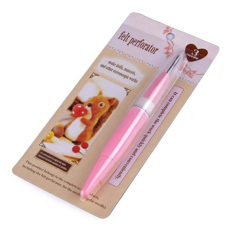 Plstící pero v růžové barvě se 3 jehlami vám poslouží k rychlejšímu a pohodlnějšímu suchému plstění. Jehly v peru můžete v případě potřeby vyměnit nebo pracovat jen s jednou či dvěmi. Jehly jsou trojhranné, po stranách mají drobné drážky na zachycení vlny.