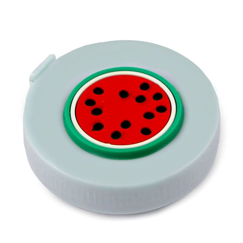 Oboustranný krejčovský svinovací metr ozdobený 3D obrázkem melounu v šedé barvě v šíři 7mm a délce 150cm pro běžné měření. Metr je vyroben z plastu, j...