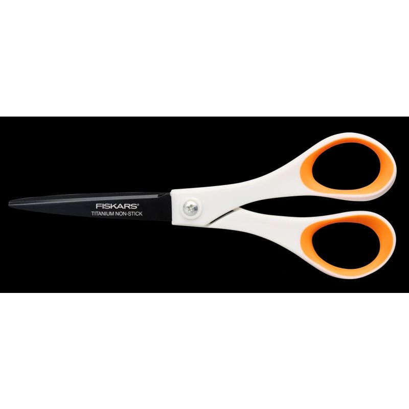 Univerzální krejčovské nůžky s titanovou úpravou s celkovou délkou 18cm, jsou ideální pro střihání lepivých materiálů či elektrostatických materiálů, jako jsou například látky. Čepele mají nepřilnavý povrch, který zabraňuje nalepení většiny samolepek a lepících pásek, statika u těchto nůžek je nulová a nemůže tedy přilnout k čepeli. V případě, že zvolíte jeden účel použití nůžek - například pro stříhání látek čepele z nerezové oceli zůstávají dlouho ostré. Ergonomicky tvarované rukojeti s povrchem Softgrip zlepšují pohodlí a ovládání nůžek. Univerzální nůžky Fiskars Titanium Non-Stick™ jsou určené pro praváky.