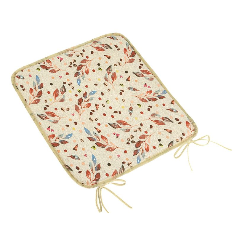 Hladký čtvercový sedák se vzorem lístků v hnědých a béžových barvách v rozměru 40x40cm s výškou cca 2 cm. Sedák je vyroben z kvalitního materiálu s vysokou odolností proti prosezení a je opatřen provázky pro pevné přichycení k židli. Je vhodný jako dekorační prvek do kuchyně nebo na zahradu pro příjemné sezení. Povlak podsedáku je vyrobený z kombinace 70 % bavlny a 30 % polyesteru, výplň je tvořena ze 100% polyuretanu (rouno z dutého vlákna).