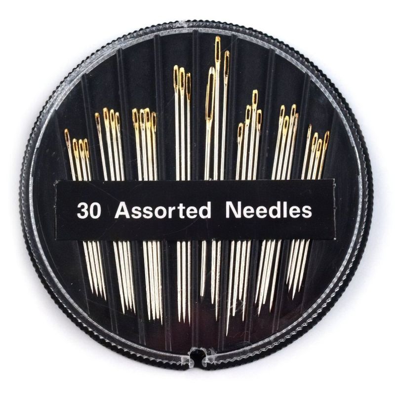 Sada krejčovských jehel v praktické plastové krabičce. Souprava obsahuje 30 kusů jehel se zlatými uchy pro bezproblémové navlečení i bez navlékače nití. Jehly jsou vyrobeny z kvalitního niklu a po použití je možné je uložit zpátky do krabičky.