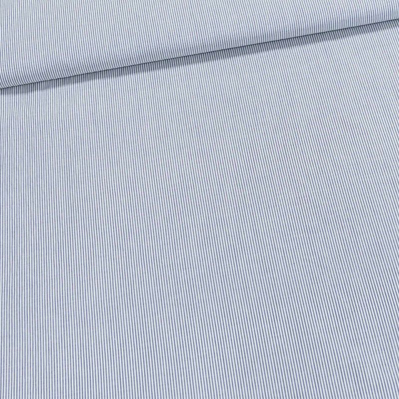 Bavlněná látka košilovina se vzorem tenkého modro-bílého proužku. Látka je v hladkém provedení a je vhodná na výrobu košil, letních šatů, sukní, halenek, košilových šatů či lehkých kalhot. Látka je v šířce 150 cm, vyrobena ze 100% bavlny (115g/m). Látka je z obou stran stejná.