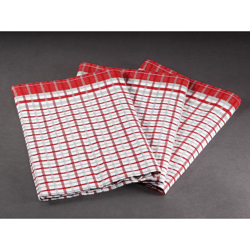 Souprava tří kusů kuchyňských utěrek z exkluzivní egyptské bavlny v rozměru 50x70cm v červené barvě v provedení s drobným kárem.