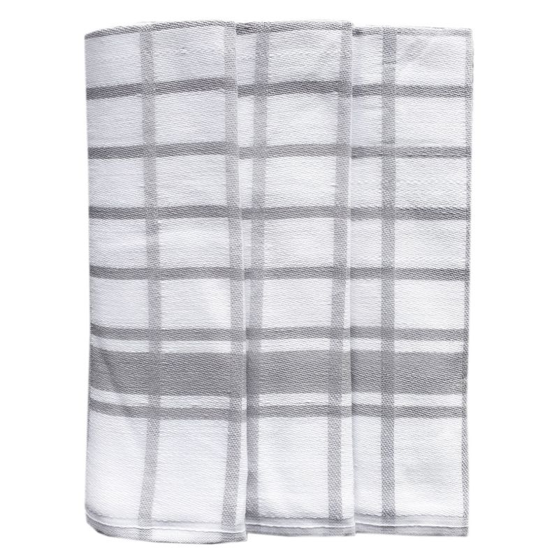 Souprava tří kusů kuchyňských utěrek z exkluzivní egyptské bavlny v rozměru 50x70cm se vzorem kára v šedo-bílém provedení.