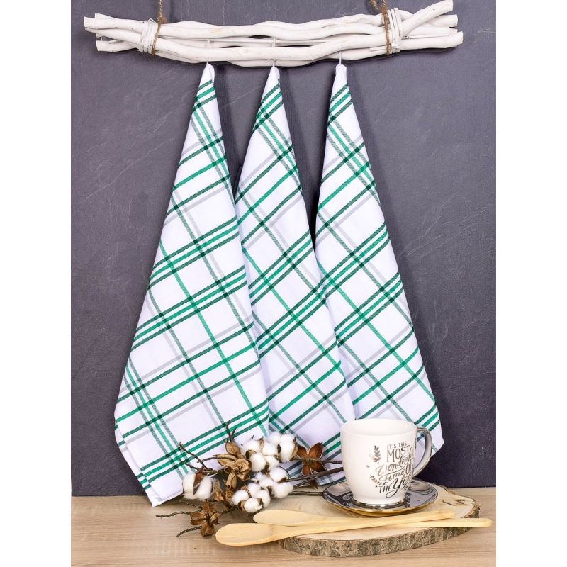 Souprava tří kusů kuchyňských utěrek z exkluzivní egyptské bavlny v rozměru 50x70cm se vzorem tyrkysově zeleného kára. Utěrky z egyptské bavlny jsou vyrobeny z kvalitní bavlněné příze v gramáži 230g/m2.