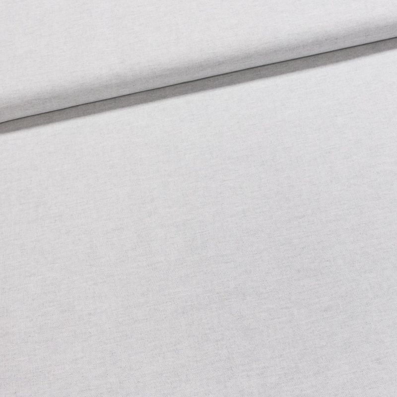 Směsová látka (tkanina) v jednobarevné šedé režné barvě. Látka je v šířce 140 cm a je vyrobena z 90% bavlny a 10% polyesteru (gramáž 210g/m2) vhodná na výrobu různých dekoračních doplňků jako jsou ubrusy, povlaky, závěsy, potahy na sedáky, polštářky. Látka je z obou stran stejná.